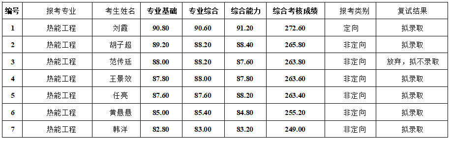 热能工程普通招考拟录取博士范传廷因个人原因放弃拟录取资格,根据综合考核成绩,韩洋同学替补拟录取。