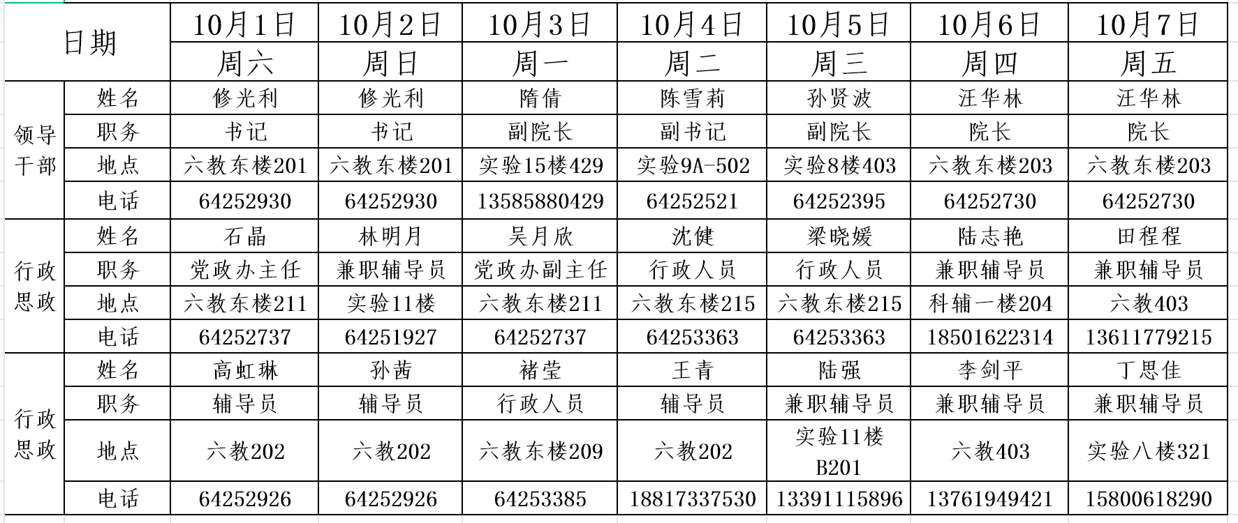 2022年国庆假期36365线路检测中心党政领导及学院办公室值班安排