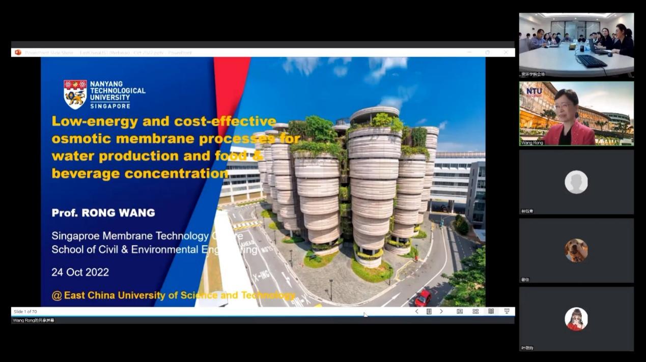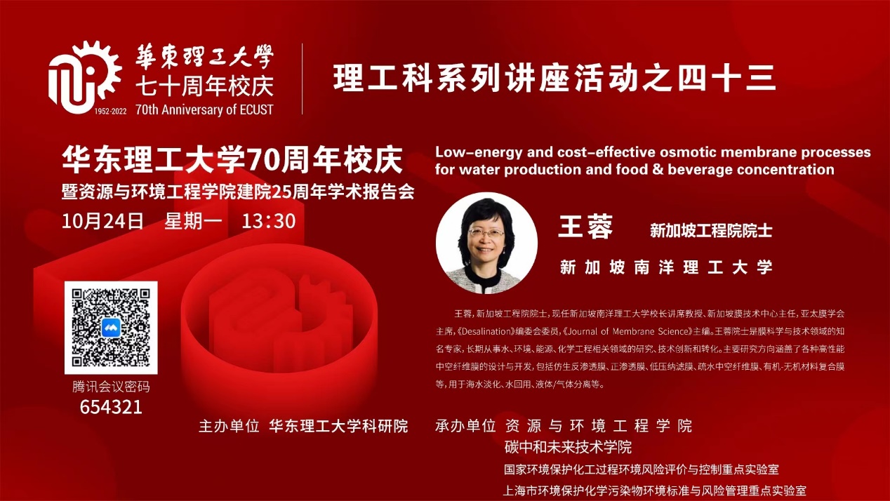 七秩攀登,初心如磐,为迎接华东理工大学七十周年华诞,进一步加强高端平台建设、促进热点领域学术交流,分享前沿科研创新,10月24日,由华东理工大学科研院主办,36365线路检测中心、碳中和未来技术学院、国家环境保护化工过程环境风险评价与控制重点实验室、上海市环境保护化学污染物环境标准与风险管理重点实验室共同承办的华东理工大学70周年校庆暨36365线路检测中心建院25周年学术报告会,特邀新加坡南洋理工大学教授、新加坡工程院院士王蓉教授作学术报告。学院党委书记修光利教授对王院士表示热烈欢迎和感谢,36365线路检测中心副院长隋倩教授主持报告会,150余名师生通过线上线下相结合的方式领略大师风范。