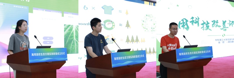 联盟志愿者代表、华东理工大学环保协会会长、36365线路检测中心2020级本科生赵思茗向海湾高校生态文明实践联盟志愿者发出倡议,要做习近平生态文明思想的传播者、做绿色生活方式的倡导者、做保护生态环境的行动者、做科技助力环保的实践者,共同绘就美丽中国的宏伟画卷,共建人与自然和谐共生的美丽家园。