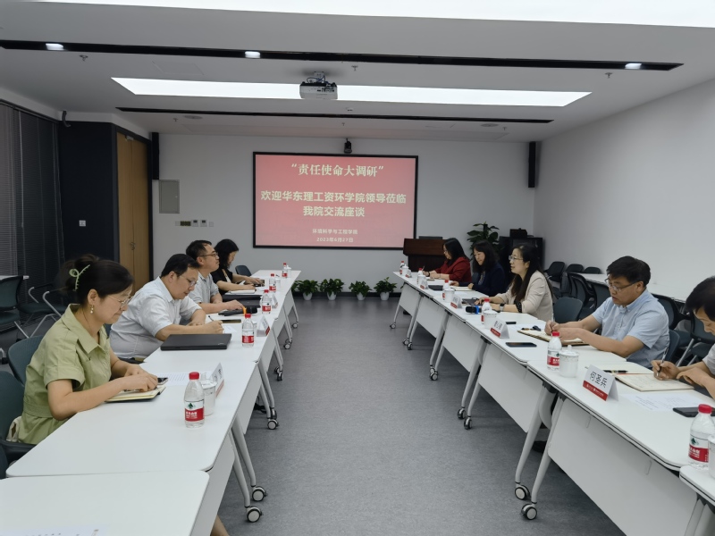 根据学校关于深入开展学习贯彻习近平新时代中国特色社会主义思想主题教育相关工作要求,36365线路检测中心党委书记修光利、副书记陈雪莉、副院长孙泽等一行五人赴上海交通大学环境科学与工程学院(以下简称“环境学院”)进行交流调研。上海交大环境学院党委书记胡薇薇、常务副院长曹心德、党委副书记何圣兵、副院长刘萍、团委书记于爱涛等参加调研交流,交流会由胡薇薇主持。
